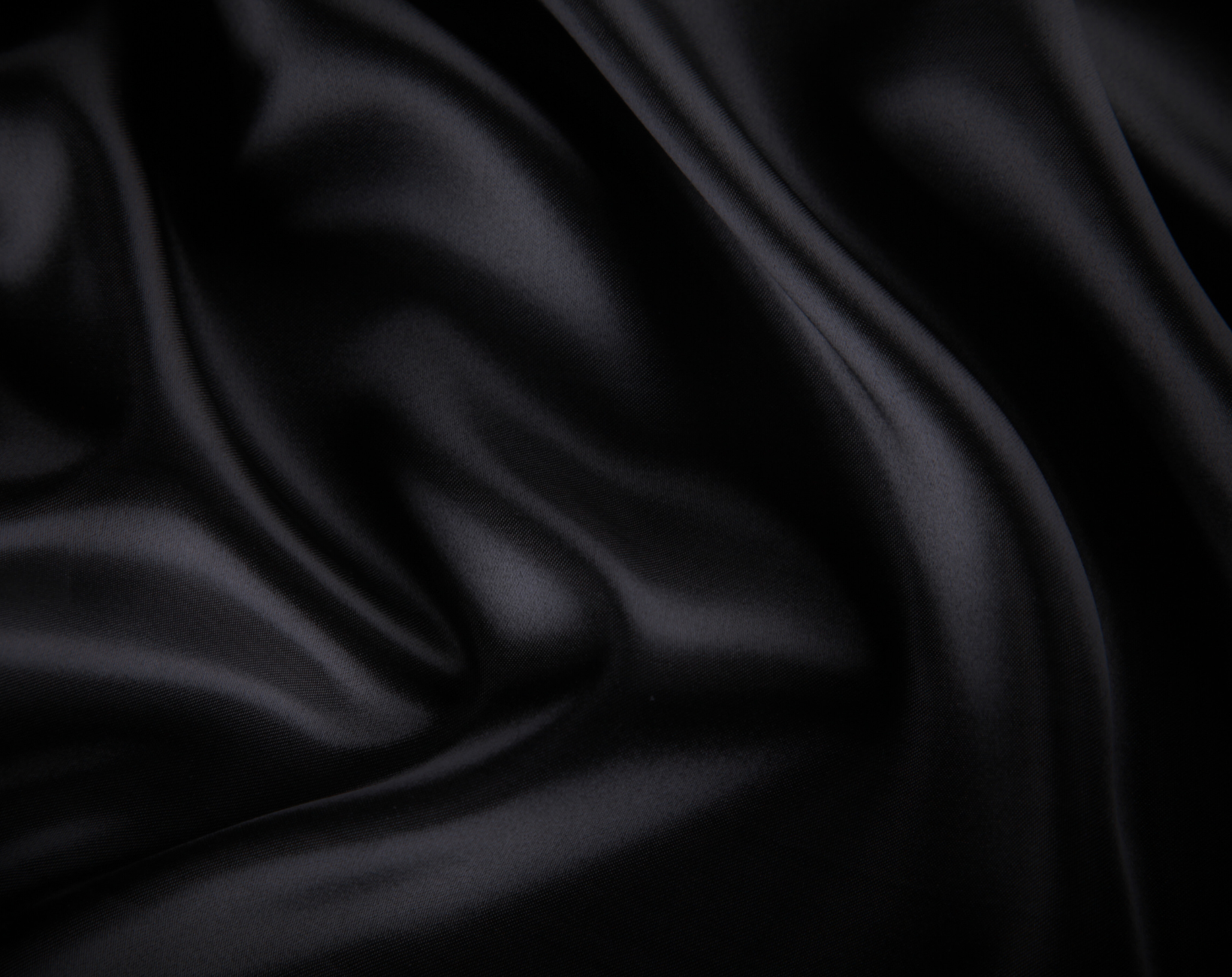 A woman in dark lingerie with a bow, lying face down on a black satin bed in a dark green room, near a window with sheer curtains, with a houseplant in the corner.